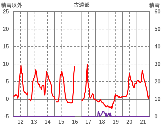 | 日 | 時 | 気温 | 降水 | 風向/風速 | 日照 | 積雪 | 降雪 |