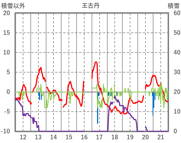 | 日 | 時 | 気温 | 降水 | 風向/風速 | 日照 | 積雪 | 降雪 |