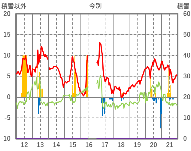 | 日 | 時 | 気温 | 降水 | 風向/風速 | 日照 | 積雪 | 降雪 |