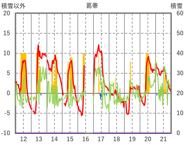 | 日 | 時 | 気温 | 降水 | 風向/風速 | 日照 | 積雪 | 降雪 |