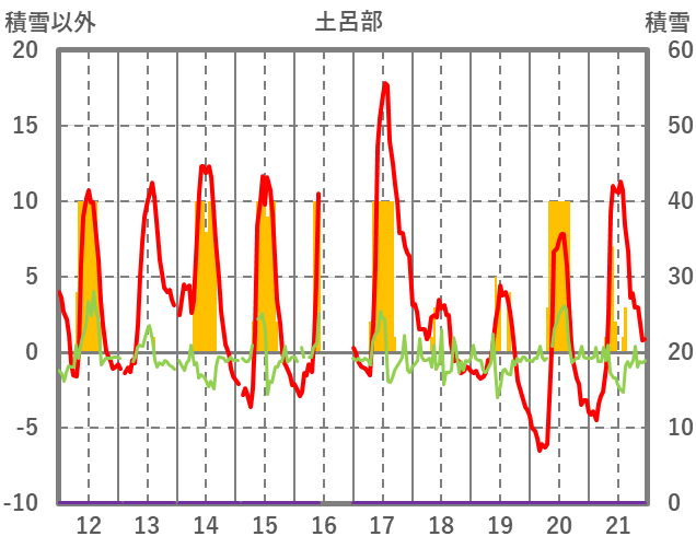 | 日 | 時 | 気温 | 降水 | 風向/風速 | 日照 | 積雪 | 降雪 |