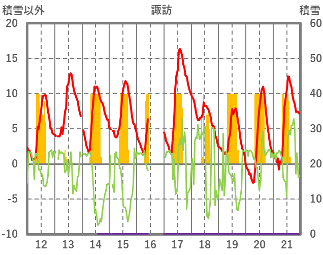 | 日 | 時 | 気温 | 降水 | 風向/風速 | 日照 | 積雪 | 降雪 |