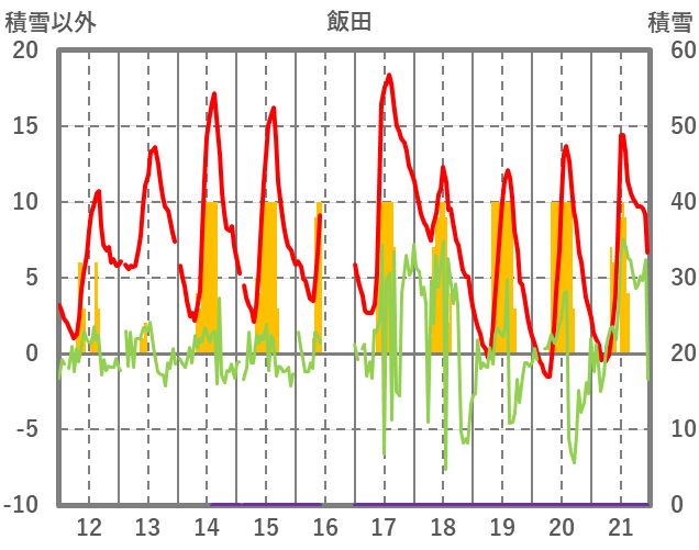 | 日 | 時 | 気温 | 降水 | 風向/風速 | 日照 | 積雪 | 降雪 |