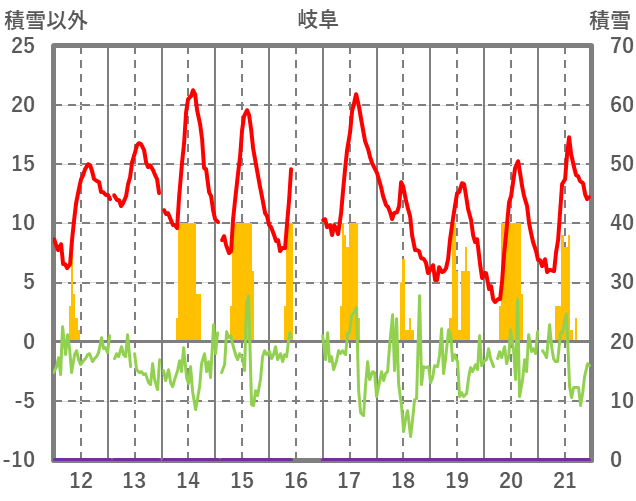 | 日 | 時 | 気温 | 降水 | 風向/風速 | 日照 | 積雪 | 降雪 |