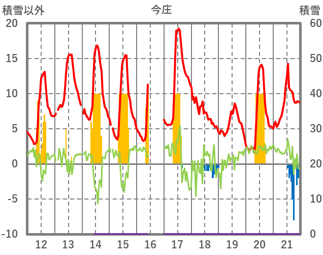 | 日 | 時 | 気温 | 降水 | 風向/風速 | 日照 | 積雪 | 降雪 |
