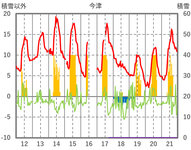 | 日 | 時 | 気温 | 降水 | 風向/風速 | 日照 | 積雪 | 降雪 |