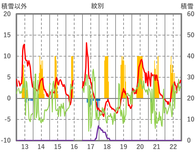 | 日 | 時 | 気温 | 降水 | 風向/風速 | 日照 | 積雪 | 降雪 |
