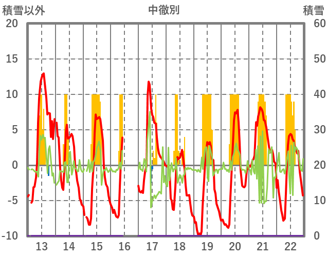 | 日 | 時 | 気温 | 降水 | 風向/風速 | 日照 | 積雪 | 降雪 |