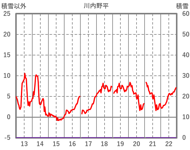 | 日 | 時 | 気温 | 降水 | 風向/風速 | 日照 | 積雪 | 降雪 |