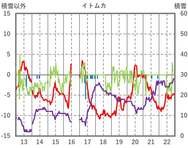 | 日 | 時 | 気温 | 降水 | 風向/風速 | 日照 | 積雪 | 降雪 |