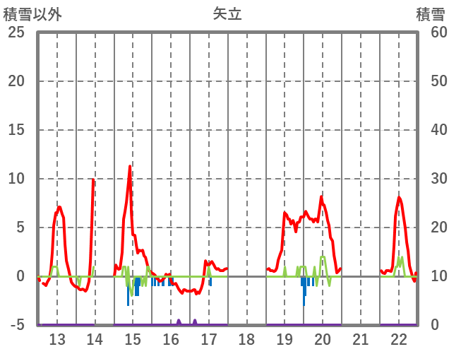 | 日 | 時 | 気温 | 降水 | 風向/風速 | 日照 | 積雪 | 降雪 |