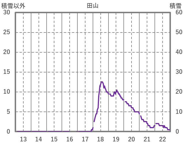 | 日 | 時 | 気温 | 降水 | 風向/風速 | 日照 | 積雪 | 降雪 |
