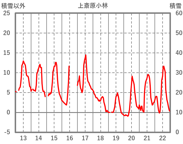 | 日 | 時 | 気温 | 降水 | 風向/風速 | 日照 | 積雪 | 降雪 |