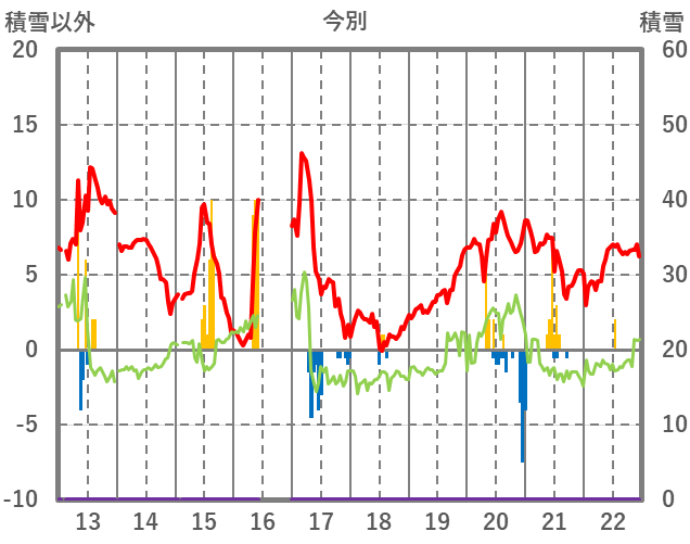 | 日 | 時 | 気温 | 降水 | 風向/風速 | 日照 | 積雪 | 降雪 |
