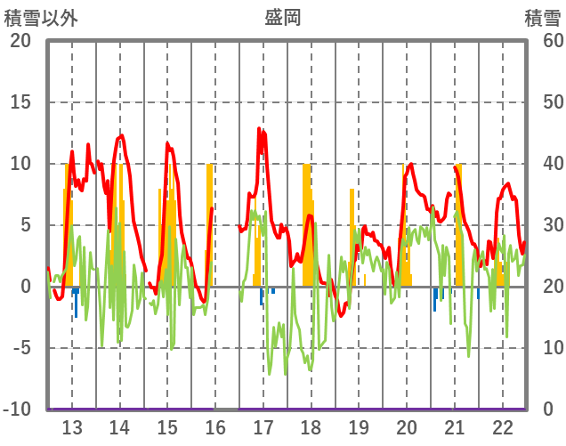 | 日 | 時 | 気温 | 降水 | 風向/風速 | 日照 | 積雪 | 降雪 |