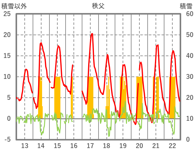 | 日 | 時 | 気温 | 降水 | 風向/風速 | 日照 | 積雪 | 降雪 |