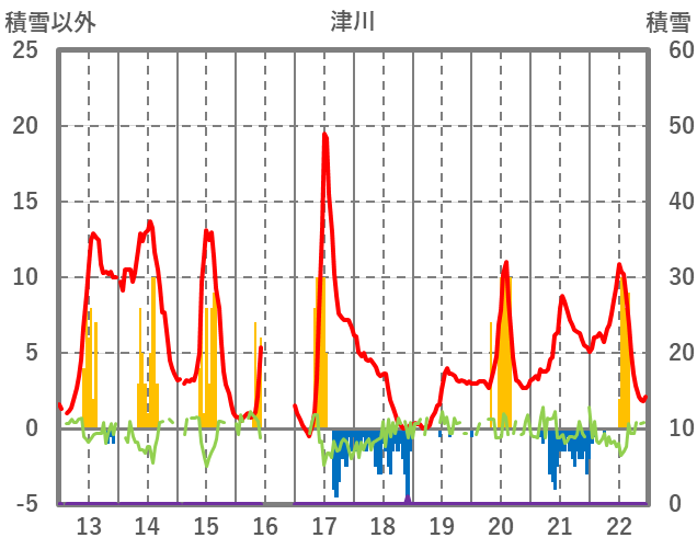 | 日 | 時 | 気温 | 降水 | 風向/風速 | 日照 | 積雪 | 降雪 |