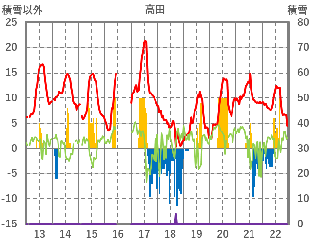 | 日 | 時 | 気温 | 降水 | 風向/風速 | 日照 | 積雪 | 降雪 |