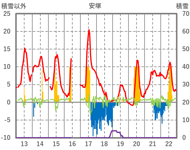 | 日 | 時 | 気温 | 降水 | 風向/風速 | 日照 | 積雪 | 降雪 |