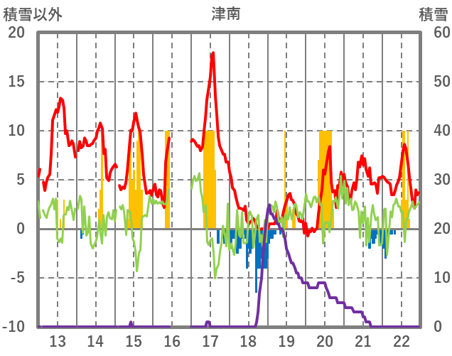 | 日 | 時 | 気温 | 降水 | 風向/風速 | 日照 | 積雪 | 降雪 |