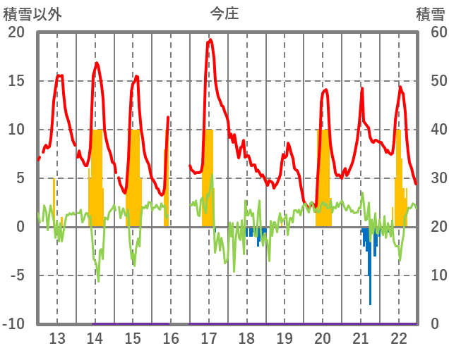 | 日 | 時 | 気温 | 降水 | 風向/風速 | 日照 | 積雪 | 降雪 |