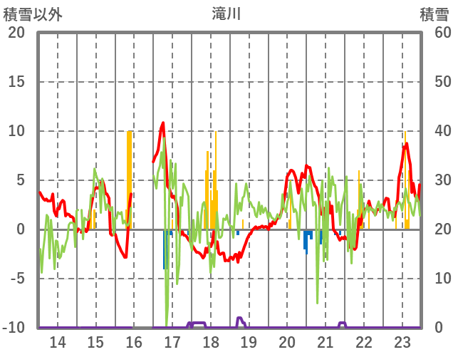 | 日 | 時 | 気温 | 降水 | 風向/風速 | 日照 | 積雪 | 降雪 |