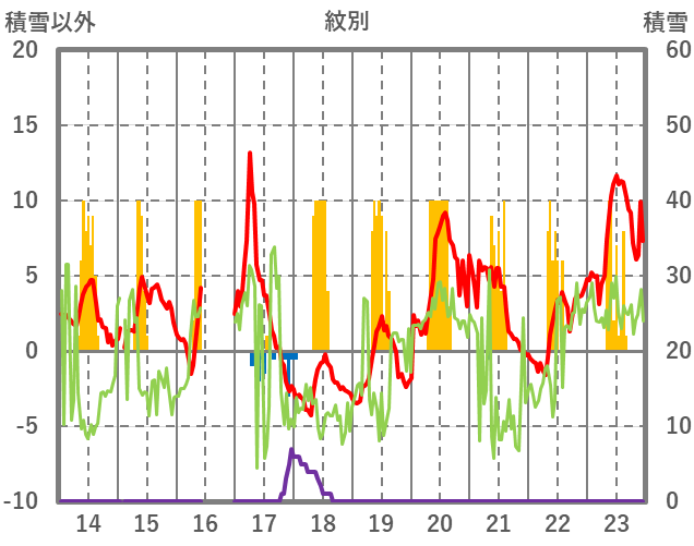 | 日 | 時 | 気温 | 降水 | 風向/風速 | 日照 | 積雪 | 降雪 |