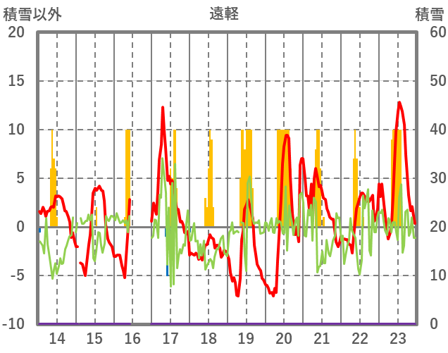 | 日 | 時 | 気温 | 降水 | 風向/風速 | 日照 | 積雪 | 降雪 |