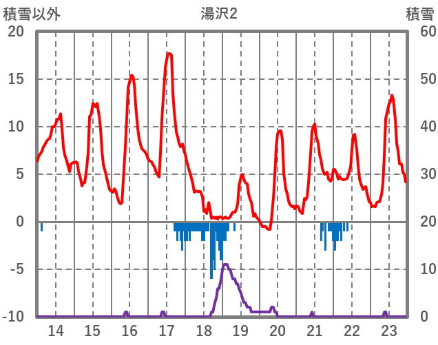 | 日 | 時 | 気温 | 降水 | 風向/風速 | 日照 | 積雪 | 降雪 |