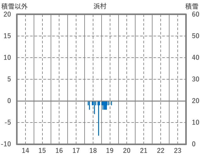 | 日 | 時 | 気温 | 降水 | 風向/風速 | 日照 | 積雪 | 降雪 |