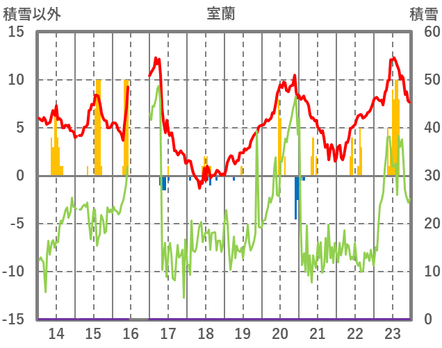 | 日 | 時 | 気温 | 降水 | 風向/風速 | 日照 | 積雪 | 降雪 |