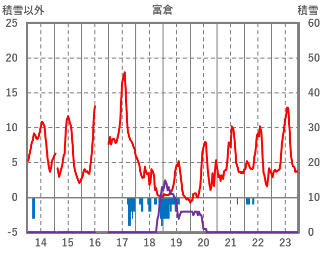| 日 | 時 | 気温 | 降水 | 風向/風速 | 日照 | 積雪 | 降雪 |