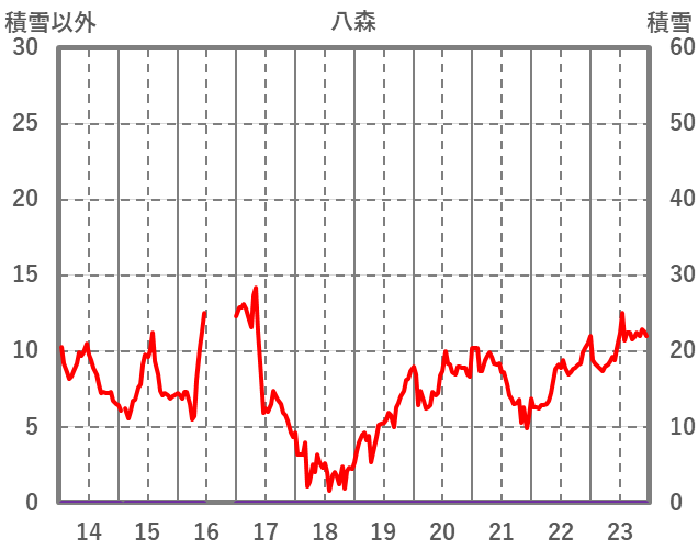 | 日 | 時 | 気温 | 降水 | 風向/風速 | 日照 | 積雪 | 降雪 |