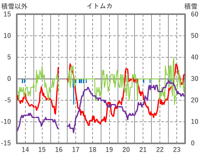 | 日 | 時 | 気温 | 降水 | 風向/風速 | 日照 | 積雪 | 降雪 |