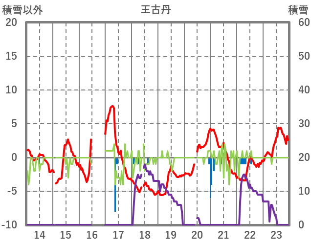 | 日 | 時 | 気温 | 降水 | 風向/風速 | 日照 | 積雪 | 降雪 |