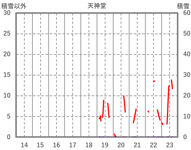 | 日 | 時 | 気温 | 降水 | 風向/風速 | 日照 | 積雪 | 降雪 |