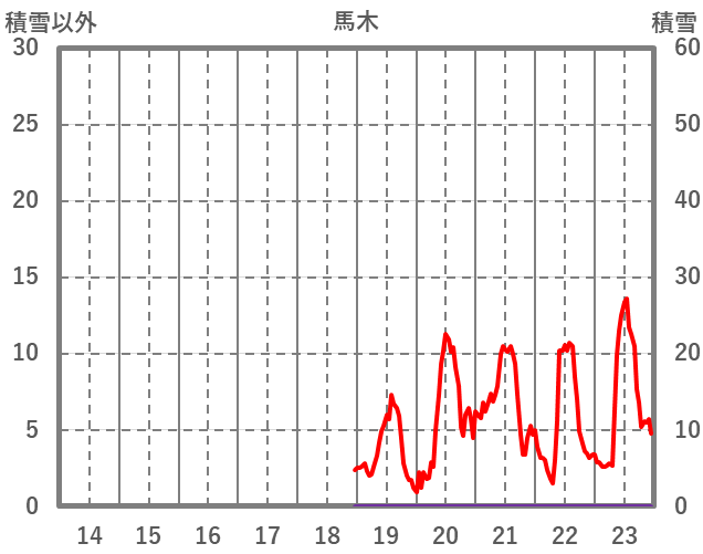 | 日 | 時 | 気温 | 降水 | 風向/風速 | 日照 | 積雪 | 降雪 |
