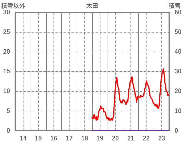 | 日 | 時 | 気温 | 降水 | 風向/風速 | 日照 | 積雪 | 降雪 |