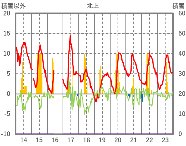 | 日 | 時 | 気温 | 降水 | 風向/風速 | 日照 | 積雪 | 降雪 |