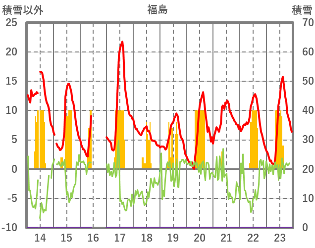 | 日 | 時 | 気温 | 降水 | 風向/風速 | 日照 | 積雪 | 降雪 |