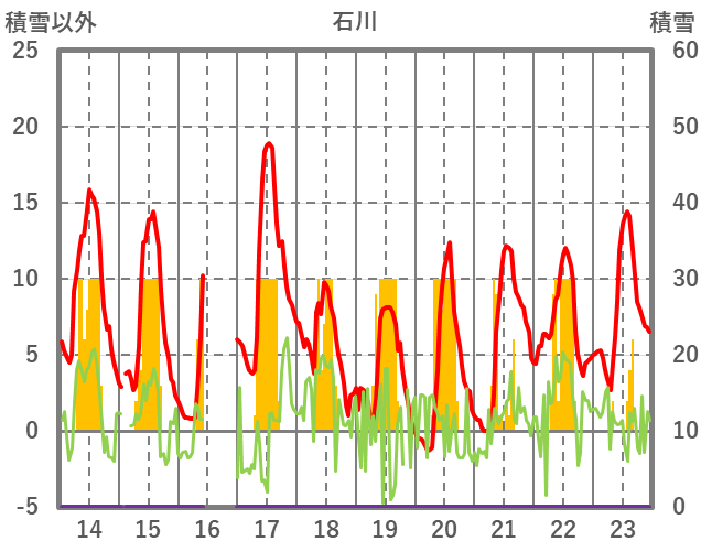 | 日 | 時 | 気温 | 降水 | 風向/風速 | 日照 | 積雪 | 降雪 |