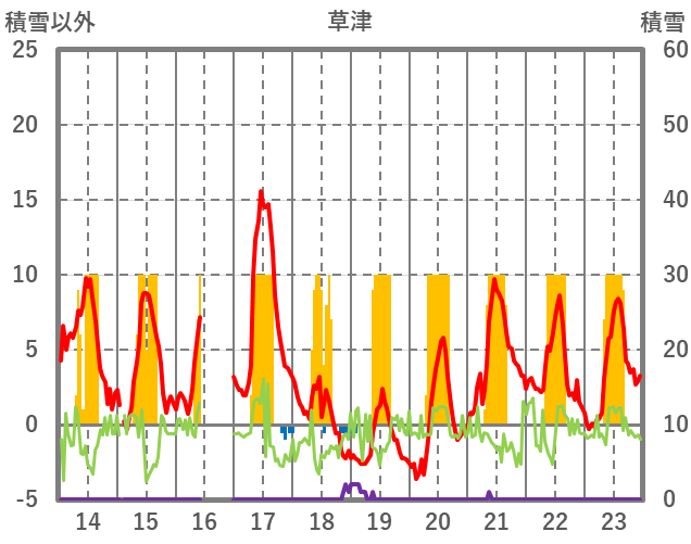 | 日 | 時 | 気温 | 降水 | 風向/風速 | 日照 | 積雪 | 降雪 |