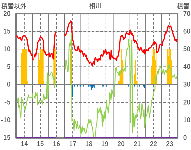 | 日 | 時 | 気温 | 降水 | 風向/風速 | 日照 | 積雪 | 降雪 |