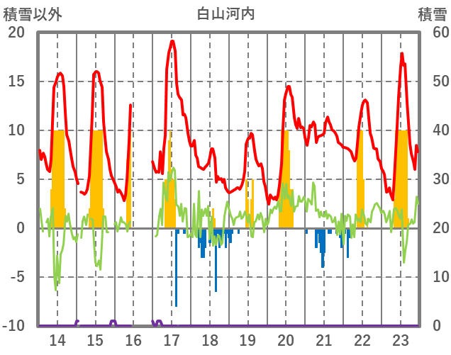 | 日 | 時 | 気温 | 降水 | 風向/風速 | 日照 | 積雪 | 降雪 |