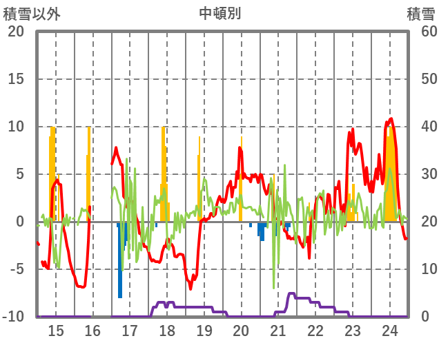 | 日 | 時 | 気温 | 降水 | 風向/風速 | 日照 | 積雪 | 降雪 |