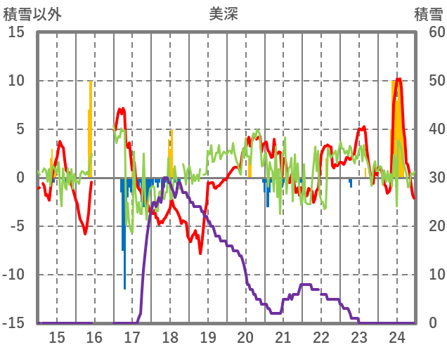 | 日 | 時 | 気温 | 降水 | 風向/風速 | 日照 | 積雪 | 降雪 |