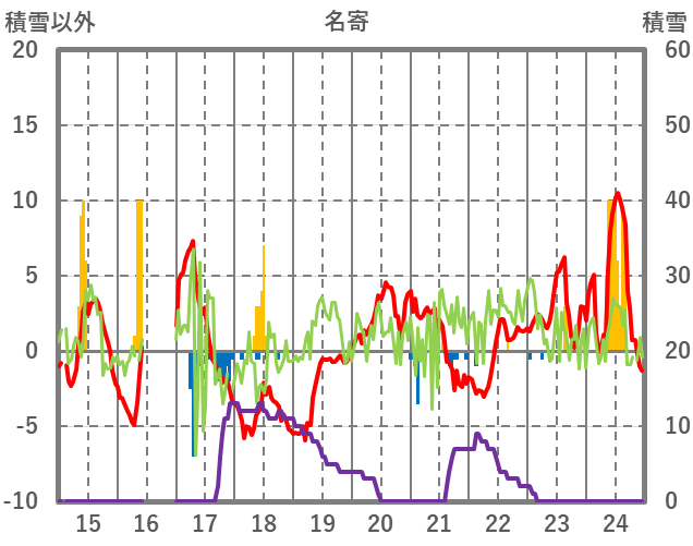 | 日 | 時 | 気温 | 降水 | 風向/風速 | 日照 | 積雪 | 降雪 |