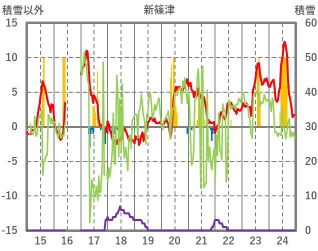 | 日 | 時 | 気温 | 降水 | 風向/風速 | 日照 | 積雪 | 降雪 |