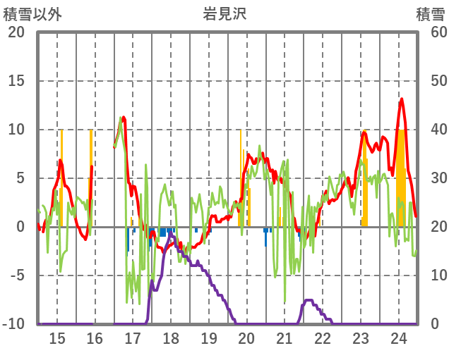 | 日 | 時 | 気温 | 降水 | 風向/風速 | 日照 | 積雪 | 降雪 |