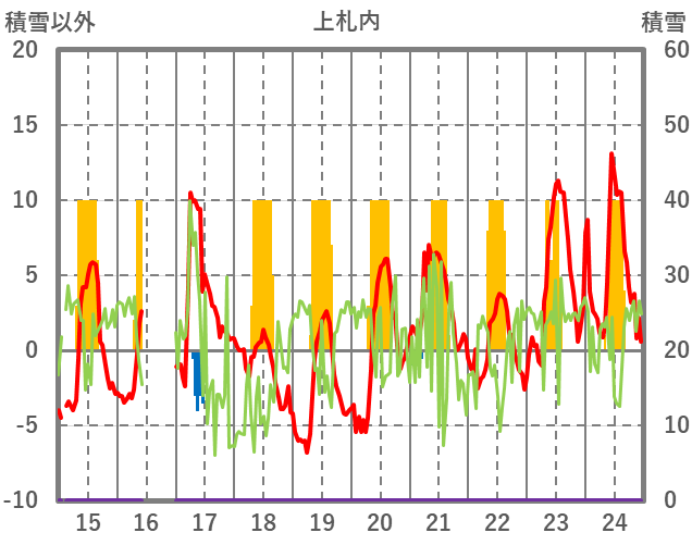| 日 | 時 | 気温 | 降水 | 風向/風速 | 日照 | 積雪 | 降雪 |